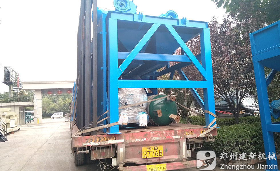 9月14日,一套建新HZS75攪拌站設(shè)備在廠家裝車完畢,等待運(yùn)往甘肅省。圖為運(yùn)輸車輛在建新機(jī)械廠區(qū)門口等待出發(fā)。