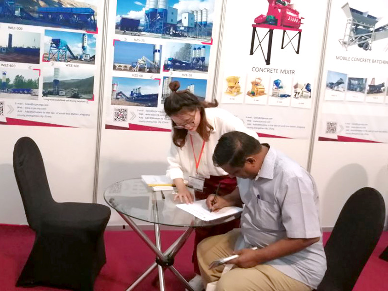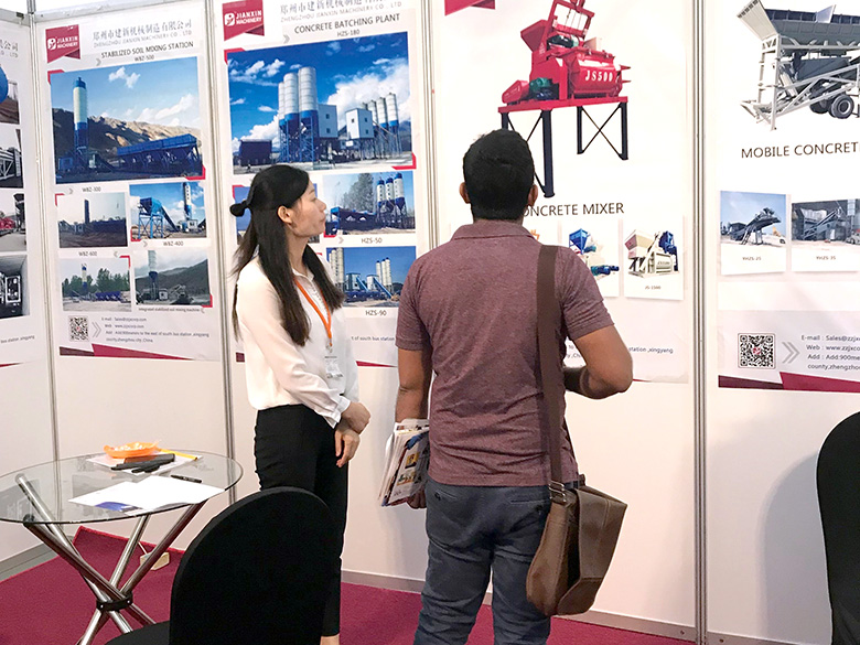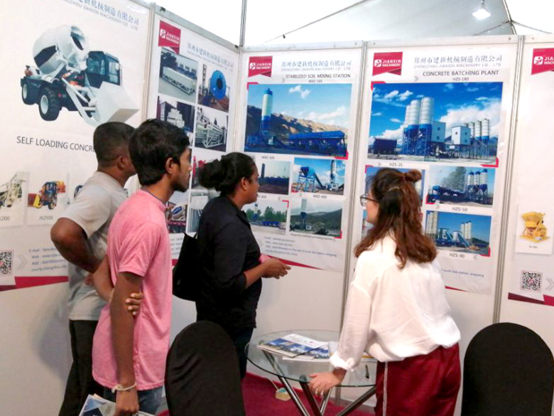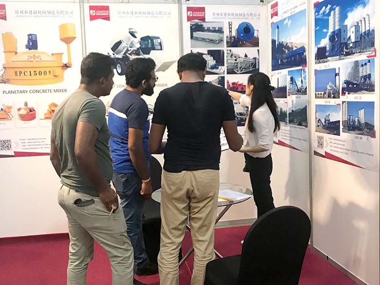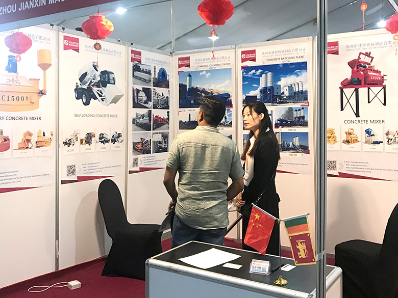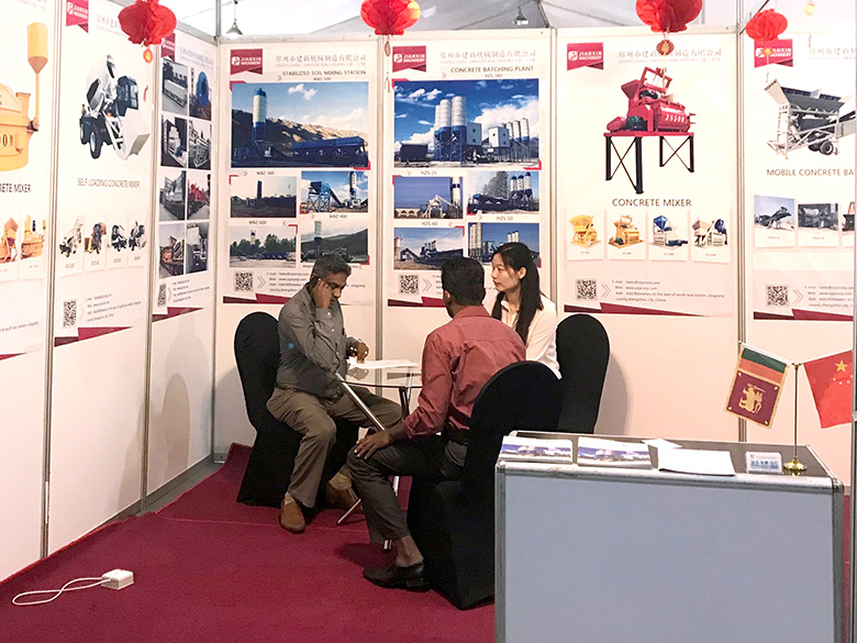 混凝土攪拌站、WBC系列穩(wěn)定土拌合站等產(chǎn)品吸引了絡(luò)繹不絕的觀展者駐足洽談。接待人員不失時機地向來觀展的客戶介紹建新機械的技術(shù)優(yōu)勢、產(chǎn)品特點、售后服務(wù)及銷售代理政策,其熱情的講解受到了廣大斯里蘭卡客戶和當(dāng)?shù)毓こ虣C械人士的關(guān)注,部分客戶當(dāng)場展開了詳細(xì)的商談。